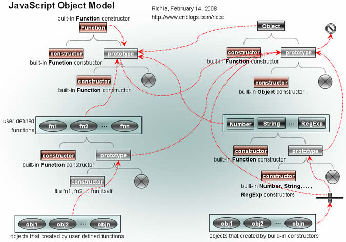具體實現上,上圖中橫向之間可能也存在關聯,例如對於build-in data structure和constructor,Function、 Date、 Array、 RegExp等都可以繼承Object的結構而實現,但這是具體實現相關的事情了。