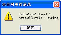 alert("table1row1 level:" + level + "\r\ntypeof(level) = " + (typeof (level)).toString());