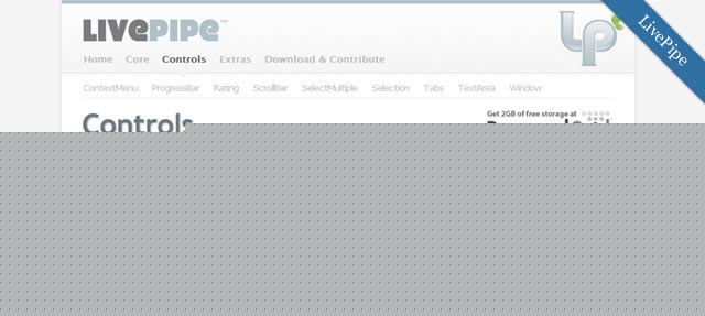 LivePipe UI 基於 Prototype Javascript 框架,包含了一整套經嚴格測試並高度可擴展的 UI 控件,擁有很好的文檔,在不支持 JavaScript 的環境中,可以無縫降級使用。包括 Tab, 窗體,文本框,多選框,評分控件,進度條,滾動條,右鍵菜單等多種控件。