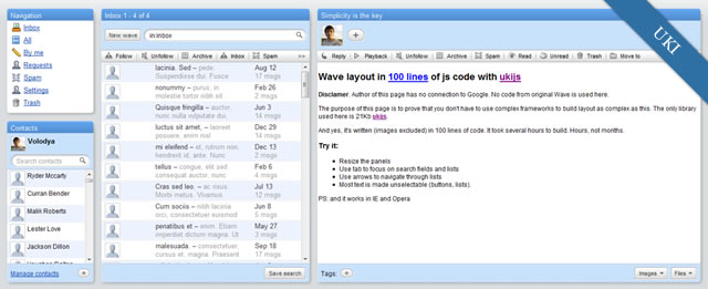 UKI 是一套簡單的 JavaScript UI 工具集,用於快速創建桌面風格的 Web 應用。包含的控件從滑動條,到分欄視圖,不一而足。熟悉 jQuery 的開發者會發現這個工具很容易上手,非常簡潔,無需安裝框架,不依賴 CSS 引用。