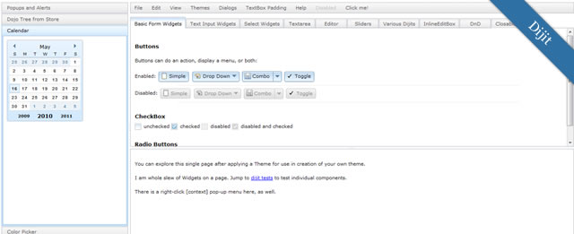 Dijit 基於 Dojo,也是學習 Dojo 擴展的一個好起點。可以用來創建非常漂亮的 Web 2.0 GUI。支持多語種,甚至支持不同語種的文字書寫方向以及本地化數字,日期等等。