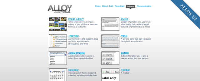 AlloyUI 是一套功能豐富的 UI 框架,基於 YUI 3,部分基於 YUI 2,包含一套豐富的(超過60)UI 部件,如圖片庫,對話框,樹形結構,面板,自動完成,按鈕,日歷控件,工具條等。