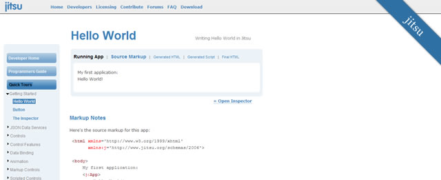 Jitsu 功能包括 XML 標記,頁面編譯,動畫引擎,Ajax 以及運行時檢測等等,它的 Ajax 功能使消費級 Web 應用的創建變得非常簡單,支持客戶端數據綁定,還可以將頁面編譯成 JavaScript,Jitsu 在 Firefox 和 IE 中運行最佳。