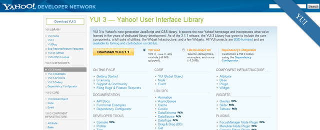 Yahoo! YUI Library 可謂所有 Web UI 之父,可靠,功能豐富,目前已經發展到第 3 版。它擁有一個很龐大的開發團隊,推出了非常豐富的功能,就功能而言,無可匹敵。
