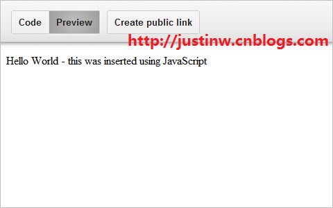 很強大的JS在線調試工具,支持多種應用多種主流框架,可以在線直接編輯調試:HTML、CSS、JavaScript,用起來非常方便,而且還可以將調試好的結果以非常簡潔的頁面直接嵌入在其他網頁裡,這樣我需要寫演示用的JavaScript實例代碼的時候,就完全可以在jsFiddle裡面直接完成編寫後調試,再將結果直接嵌入Blog正文裡即可了,真的是很方便的選擇,如下所示(這個例子只能在Firefox裡查看Result效果)。