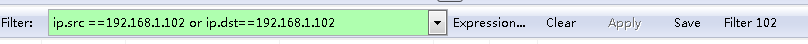 比如 ip.src ==192.168.1.102 顯示源地址為192.168.1.102,