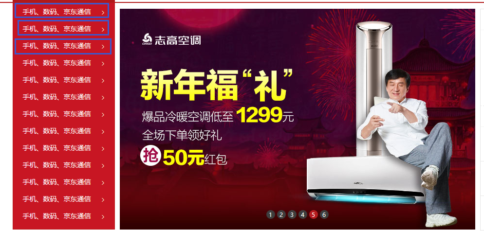 現在天貓或者京東商品分類模塊的默認的效果是這樣的: