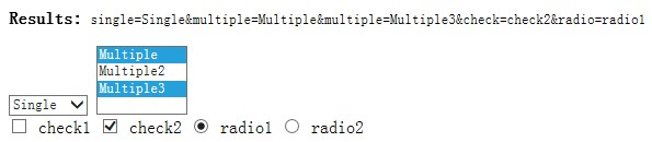$("#results").append( "<tt>" + $("form").serialize() + "</tt>" );
