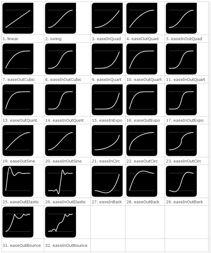 引入之後,easing參數可選的值就有以下32種: