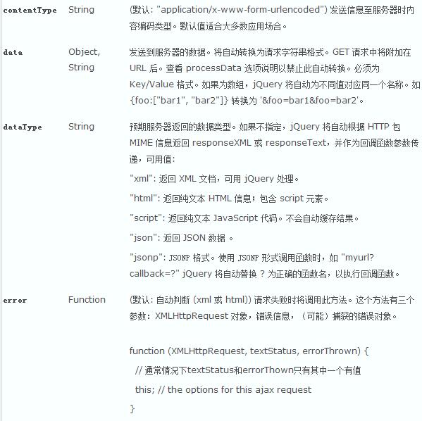 請認真閱讀上面的參數列表,如果你要用jQuery來進行Ajax開發,那麼這些參數你都必需熟知的。