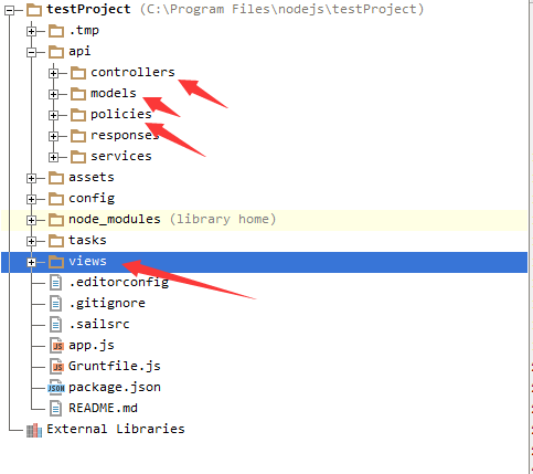 我們可以看到它與是由model,view,controller組成,它們之間的調用關系與.net mvc十分類似,只不過.net mvc裡的model主要是指viewmodel,而在sails裡model主要是數據模型,即.net裡的Entity,它是數據表的一種抽象,對於數據的持久化,sails提供了很多種,如本地文件,mysql,mongodb,redis等,對於sqlserver我們也可以找到第三方的組件。