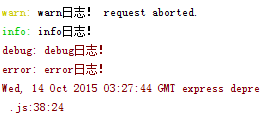 看到Sails的日志就會想起來log4net,確實它們在很多地方是相似的,都是采用分級別記錄的方式,而sails我覺得在使用上更加方便,它不需要我們做多於的事情,直接sails.log.級別("你的日志內容")就搞定了,你不需要關心什麼單例,或者持久化方式,Sails的日志只是對console.log的一種補充,可以理解為分了類之後的console.log,並有顏色的區分,呵呵。