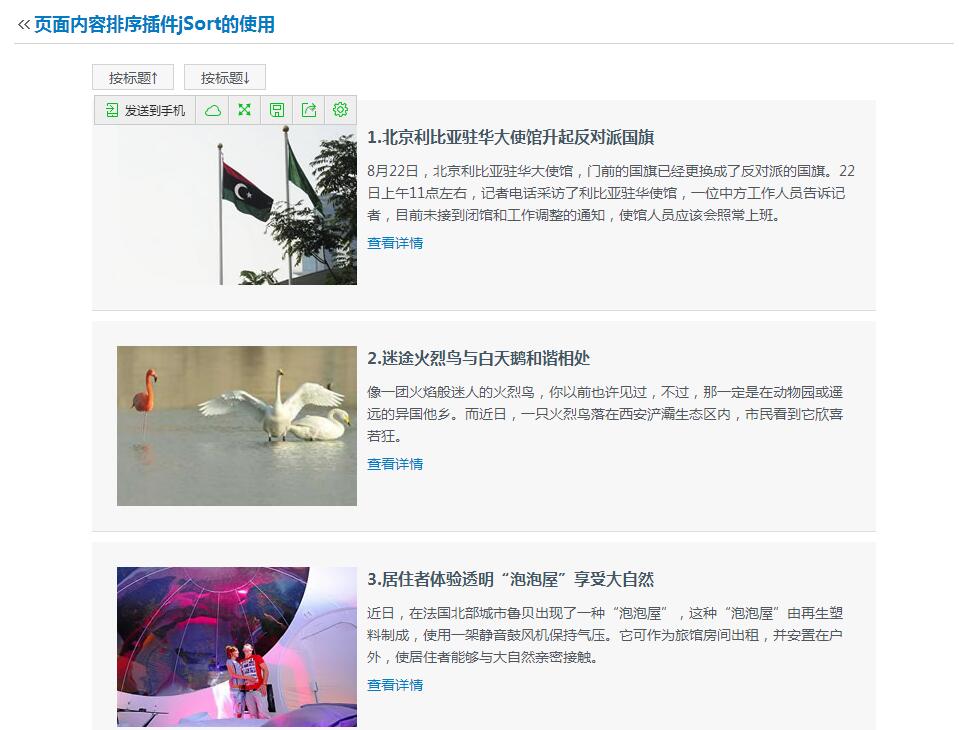 當單擊控制按鈕的時候,調用jSort插件將內容進行排序,請看代碼: