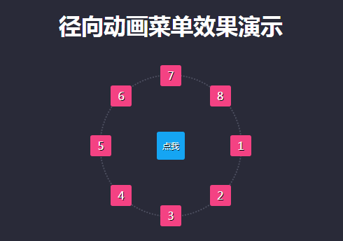 var startAngle =0, endAngle=360; //可以通過改變角度,做出各種各樣的徑向菜單