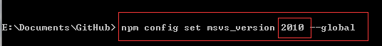 (有些時候會自動指定,所有也不一定需要這個命令 npm config set msvs_version 2010 --global)