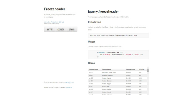 Freezeheader 是一個簡單的jQuery插件凍結在HTML表格標題行。它也被稱為固定頭表。