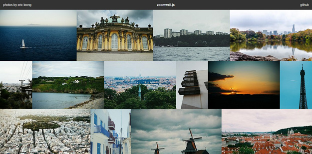 zoomwall.js 是一個專注於內容的圖片使用砌體水平布局,尺度在燈箱模式。