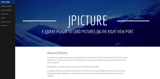 jPicture 是一個jQuery插件加載圖片的右視圖。jpicture加載圖片的版本只有最合適的圖片為視圖頁面上顯示。