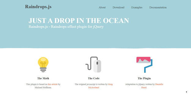 Raindrops.js 是一個jQuery插件創建雨水滴效果。有很多選項/設置來定制這個插件。