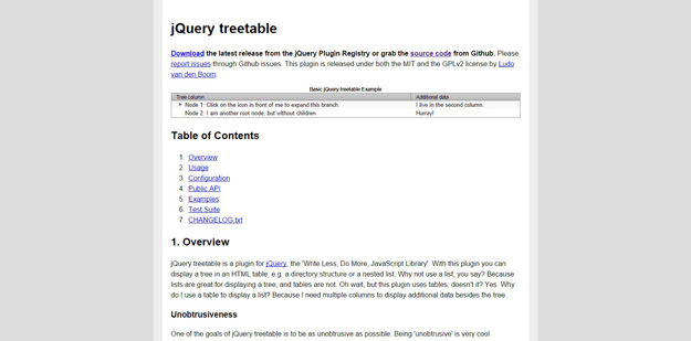 jQuery treetable 是一個jQuery插件,你可以在一個HTML表格和目錄結構或嵌套列表顯示一棵樹。