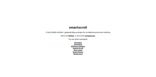 smartscroll is 一個小小的jQuery插件,使部分滾動(scrolljacking),自動哈希(更新根據頁面上的當前位置的URL散列)和響應。