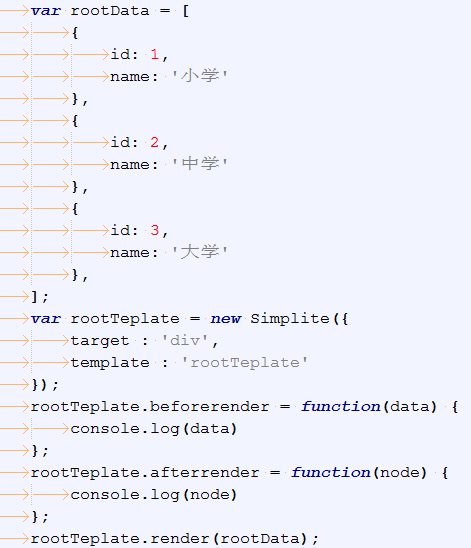 8:支持子模板使用Simplite.dataKey指定的字段訪問傳遞過來的數據全集,默認值為"_this",對於數組、數字這樣的數據集來說,使用Simplite.dataKey很容易拿到數據。