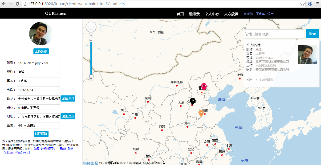 有一天班長說了,同學們希望我開發一個可以共享位置的通訊錄,於是自己簡單設計了下功能。包括用戶角色、發表微博、共享位置等等。這次也是有點私心的,為了鍛煉最近看的angularjs,於是果斷選擇Node.js + MongoDB + angular.js的方案。當然,開發Node.js的體會越來越深刻。記得,去年leader告訴我說盡量讓node的每一個服務只支撐一個業務功能,這樣才能更方便的維護。當時特別想把一個Node服務做的特別強大。現在看來leader的做法是對的,我更加傾向於把node服務功能單一化...