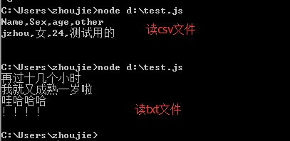 准備一個文本文件(當然也可以是csv文件等)test.txt和text.csv,nodejs文件test.js如下: