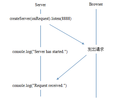 在運行完"Hello World"後,開始編寫一個完全基於Node的Web應用。首先需要啟動服務器模塊,http模塊中的createServer函數返回的對象有一個listen([PORT])方法監聽端口。這個函數的參數很奇怪,是一個函數定義。在JavaScript中,一個函數可以作為另一個函數接收一個參數,參數函數就叫匿名函數。而使用這種方法的原因是node采用了基於事件驅動的回調。當服務器在單進程接收到一個請求時,就會調用這個函數來處理這個請求。當有相應的事件發生時,createServer函數就調用這個函數來回調。