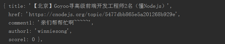 這個問題解決了,但score1的數值好像太大了點吧。再一看,原來class='big'有兩個,用戶的話題收藏也是屬於這個class。我們得通過cheerio的.slice( start, [end] )來切取第一個元素,即將score 修改為 score = $('.big').slice(0).eq(0).text().trim();。正確結果如圖。