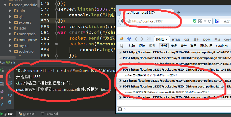小伙伴們是否了解了在node.js中使用socket.io制作命名空間的方法了呢,這裡的2個例子很簡單,童鞋們自由發揮下。