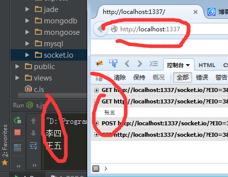 socket.io類庫不但可以相互發送消息,而且還可以通過socket端口對象的emit方法互相發送事件.
