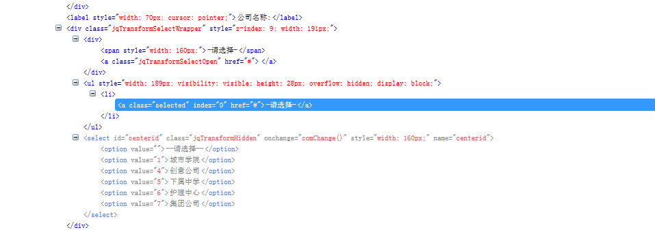 哈哈,在ajax查詢公司數據之後,將jqtransform生成的select相關的div刪除掉,然後把selct拼接上,再重新初始化select。方法比較蠢,不過先用著吧,以後有更好的辦法再說。