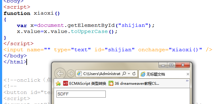 7)onchange:當用戶改變域的內容(onchange事件常結合對輸入的字段驗證來使用,常用語表單驗證身份證、郵箱注冊及登錄、區號等等的格式是否正確)