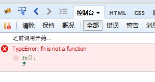 可以看到代碼在執行到第一次調用fn()函數的時候,提示:fn is not a function (fn 不是一個方法),遇到錯誤而終止運行。