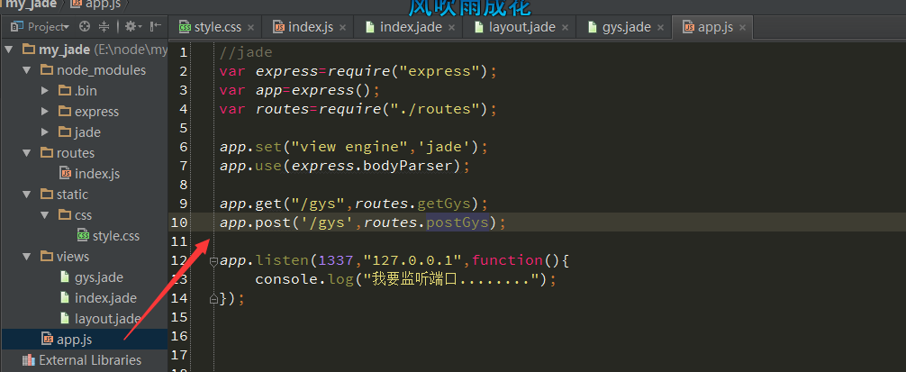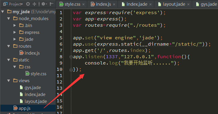 運行app.js:node app.js;