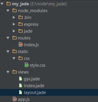 2.下載express和jade包到本地.我個人不喜歡下載成全局的,我喜歡下到工程文件夾中去.