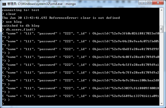 代碼如下:db.users.find()