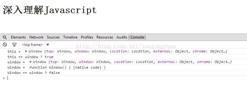 運行代碼,輸出this == window ?true ,這說明 Window== window,真的是這樣嗎?
