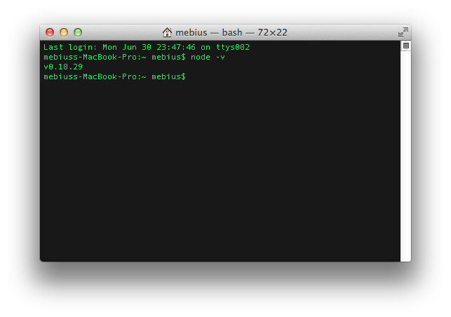 本教程撰寫時,Node.js版本為0.10.29,如果你的版本高於此版本,我們會提供相關的版本兼容說明。如未提供任何版本兼容說明,則表示你的版本適用於Egret。