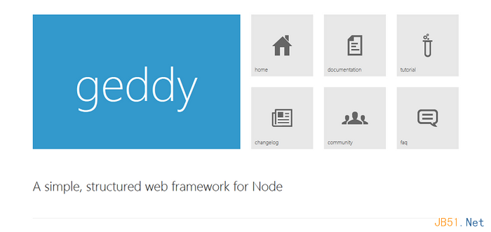 Geddy是一個非常簡單的基於Node.js的結構化MVC框架。你可以使用它快速的構建Web應用和JSON API。如果你使用過Ruby on Rails或者PHP的codelgniter,那麼Geddy和他們非常類似。它擁有一個RESTful的路由、模板渲染、控制器和模型。