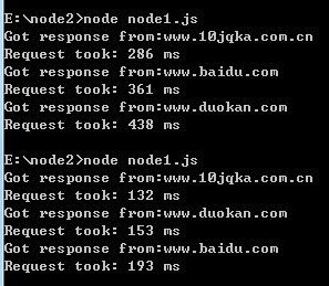 我們要求node.js訪問三個url並報告收到響應的情況以及所耗費的時間。