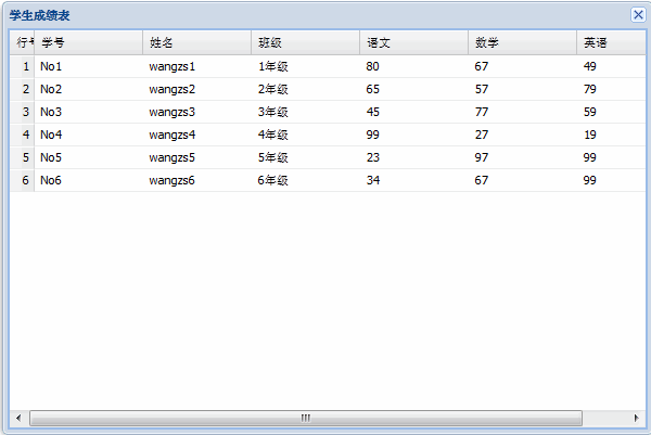 var myData = [ [ 'No1', 'wangzs1', '1年級', 80, 67, 49 ],