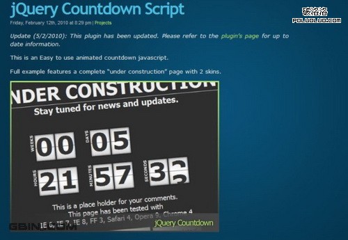 希望大家能夠喜歡這些插件,如果你也知道其它不錯的倒計時jQuery插件,請與我們分享,謝謝閱讀!