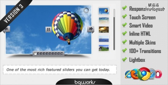 li jQuery Image Slider / Banner Image Rotator 精心打造的滑塊/圖像旋轉,功能全,非常容易安裝和定制。當你需要一個全功能的滑蓋圖像旋轉,或者你需要一個簡單的廣告橫幅。可以考慮li jQuery Image slider
