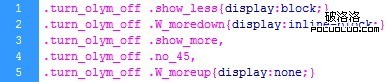 在這裡把所有用到的代碼全部放在一起,把某種狀態時不用顯示的隱藏掉,比如展開狀態時,class=”show_less W_linecolor”的div和展開的按鈕class=”W_moredown”不用顯示,就可以在最外層的div上寫: