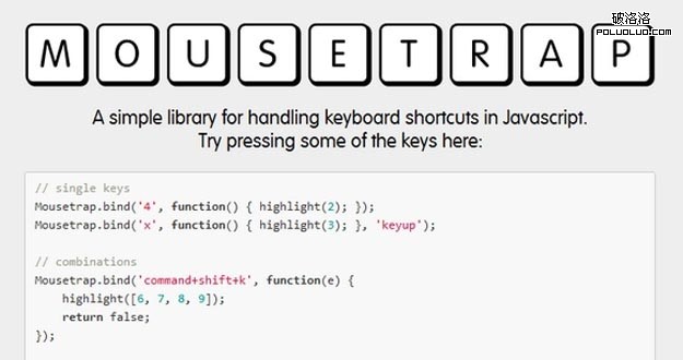 Mousetrap 是一個JavaScript Library用於創建和管理鍵盤快捷鍵。這個JS是一個單獨的JS包,非常小只有1.6kb。支持大部分浏覽器包括IE6。