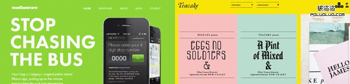 色塊背景也很流行,但已經不是通常那種永不過時的黑和白。很多設計師使用強烈、濃重的顏色來幫助網站內容從背景中突顯出來。