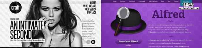 不要擔心采用濃烈的圖案背景。大塊的、重復拼接的圖案現在隨處可見。細膩的紋理可以給設計增加真實感。此類流行設計的關鍵在於恰當的反差對比。請看 Alfred 網站的紫色,你可能要仔細地查看才能注意到背景中交叉的圖案。