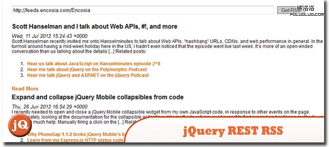 2. jQuery REST RSS 該插件與最初的jQuery RSS 十分類似,不過它演示了如何在列表中通過懸停鼠標來預覽內容,提示框由隱藏的div構成,在鼠標滑過的時候出現。